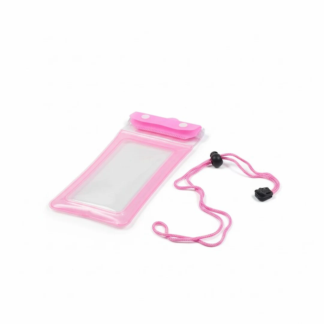 Su diseño transparente permite visualizar el contenido con claridad, mientras que el cordón ajustable facilita llevarla al cuello o en la muñeca para mantener el celular siempre a la mano. La estructura sellada contribuye a evitar filtraciones accidentales, ofreciendo una capa de protección práctica para uso recreativo o cotidiano.