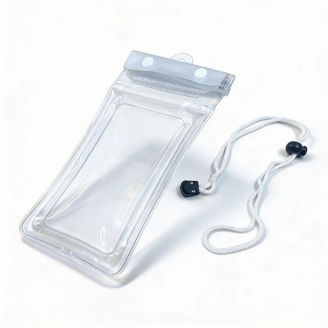Su diseño transparente permite visualizar el contenido con claridad, mientras que el cordón ajustable facilita llevarla al cuello o en la muñeca para mantener el celular siempre a la mano. La estructura sellada contribuye a evitar filtraciones accidentales, ofreciendo una capa de protección práctica para uso recreativo o cotidiano.
